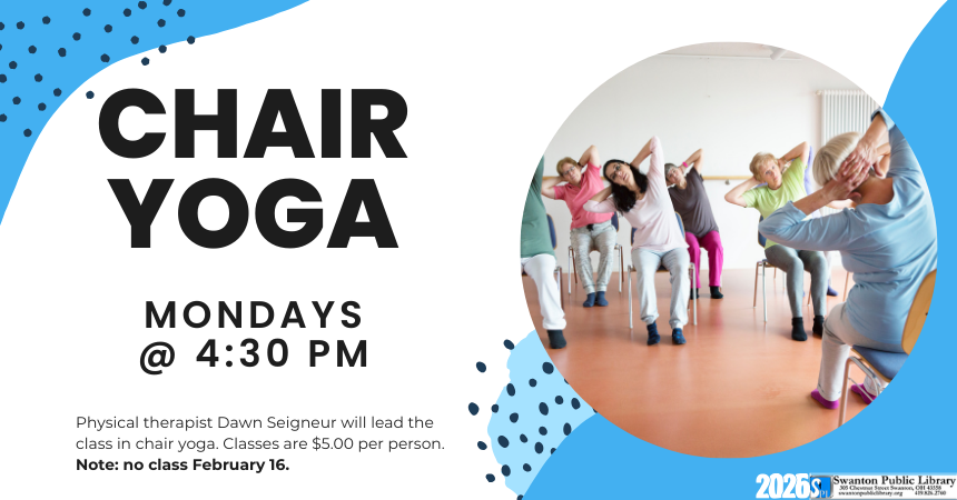 Monday, February 2, 2026 | 4:30 to 5:30pm United States Mondays at 4:30 pm. Physical therapist Dawn Seigneur will be here to lead a class in chair yoga. Classes are $5.00 per person. Registration is not required. Audience Adults